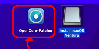 When the system restarts, Select "OpenCore Patcher". The system will flash for a second. Afterwards select "Install MacOS Ventura".